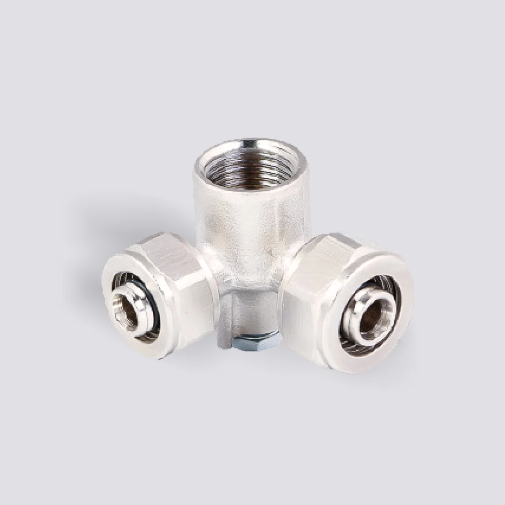 سه راهی 90 درجه دیواری تبدیلی کوپلی | اتصالات برنجی بدون سرب | لوله و اتصالات فلزی در رساسرویس